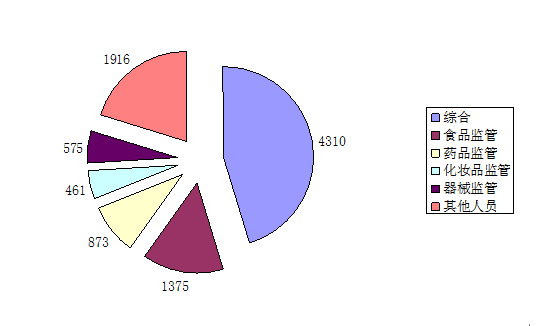 从所在部门看,综合在岗人员4310人,食品监管在岗人员1375人,药品监管在岗人员873人,化妆品监管在岗人员461人,AG真人娱乐娱乐监管在岗人员575人,其他岗位人员1916人。