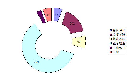 从案件来源看,投诉举报64件,监督抽验202件,执法检验92件,日常监管和专项检查759件,其他部门通报37件,其他66件。
