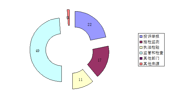 从案件来源看,来源于投诉举报的案件22件,来源于抽检监测的案件17件,来源于执法检验的案件11件,来源于日常监督和专项检查的案件49件,来源于其他部门通报的案件0件,其他来源1件。